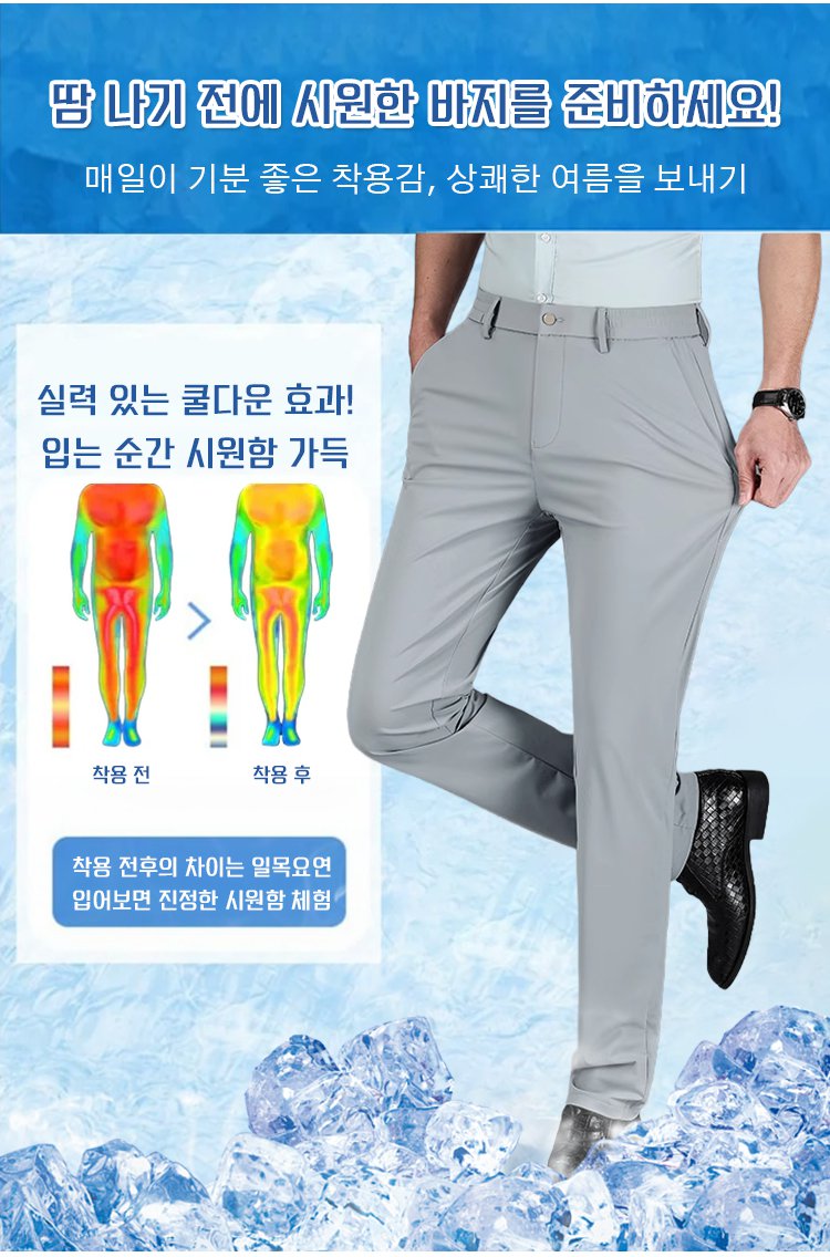 초박형 아이스 실크 신축성 속건 스트레이트 캐주얼 바지