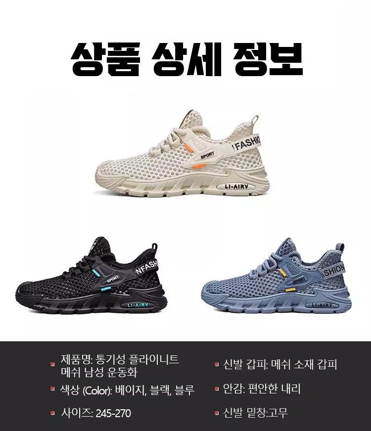통기성 플라이니트 메쉬 남성 운동화