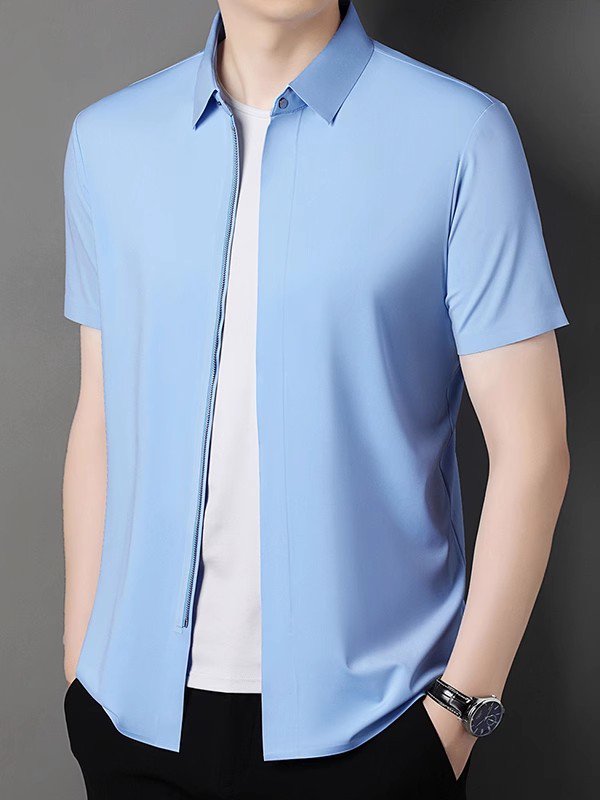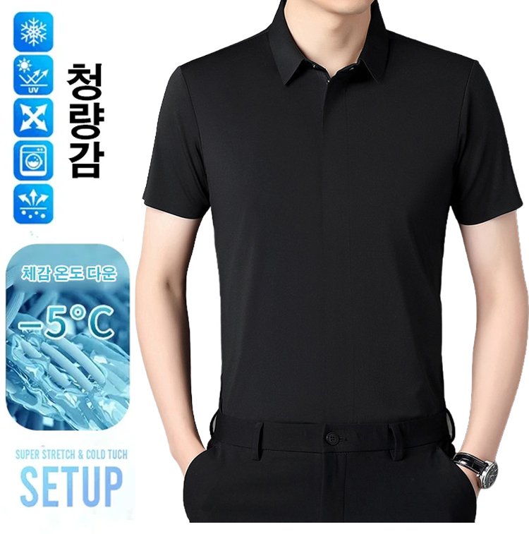 남성 히든 플랩 지퍼 반팔 티셔츠