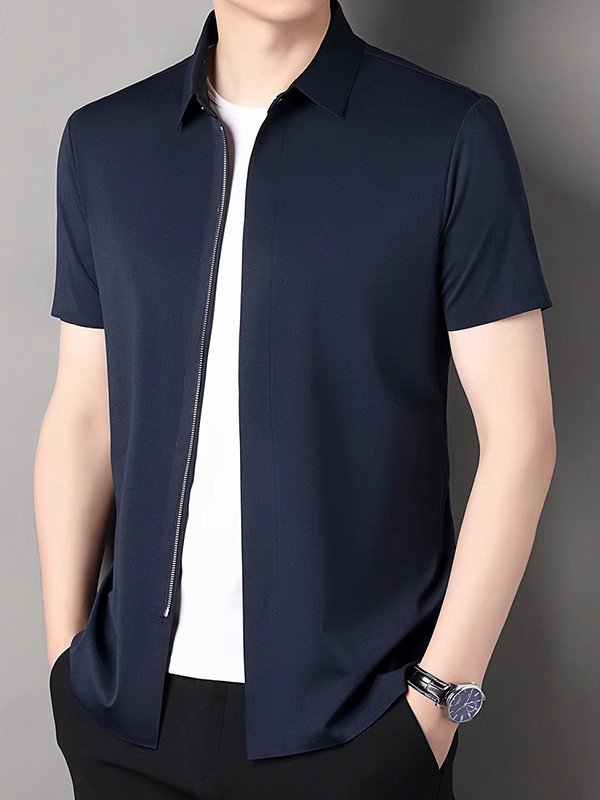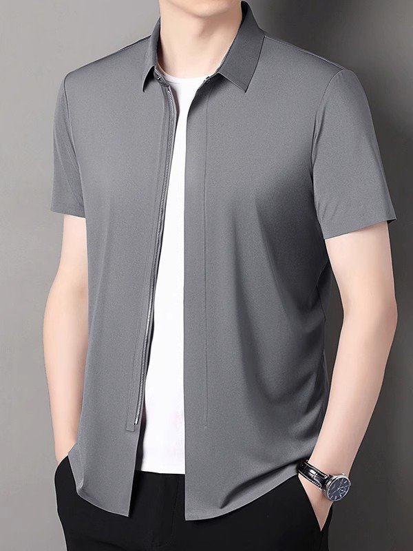 트렌디한 지퍼 디테일 남성 반팔 티셔츠