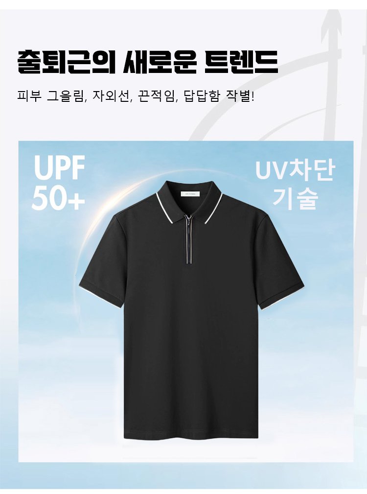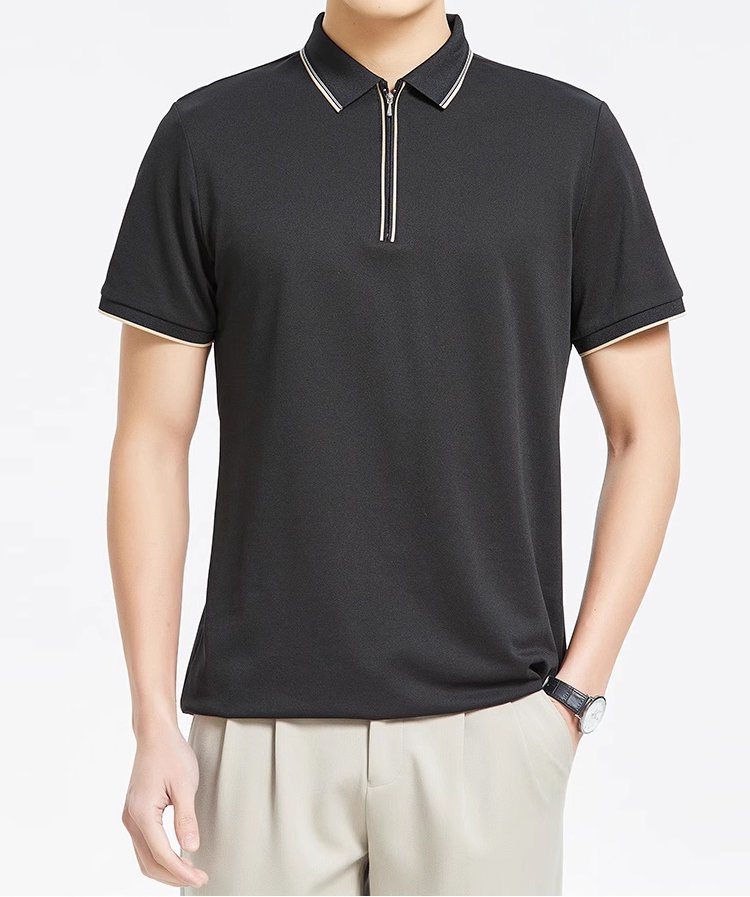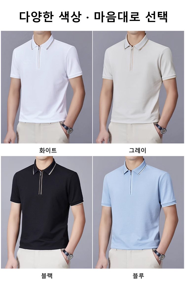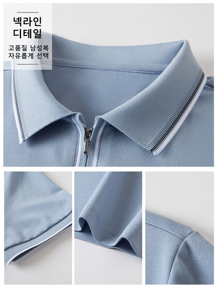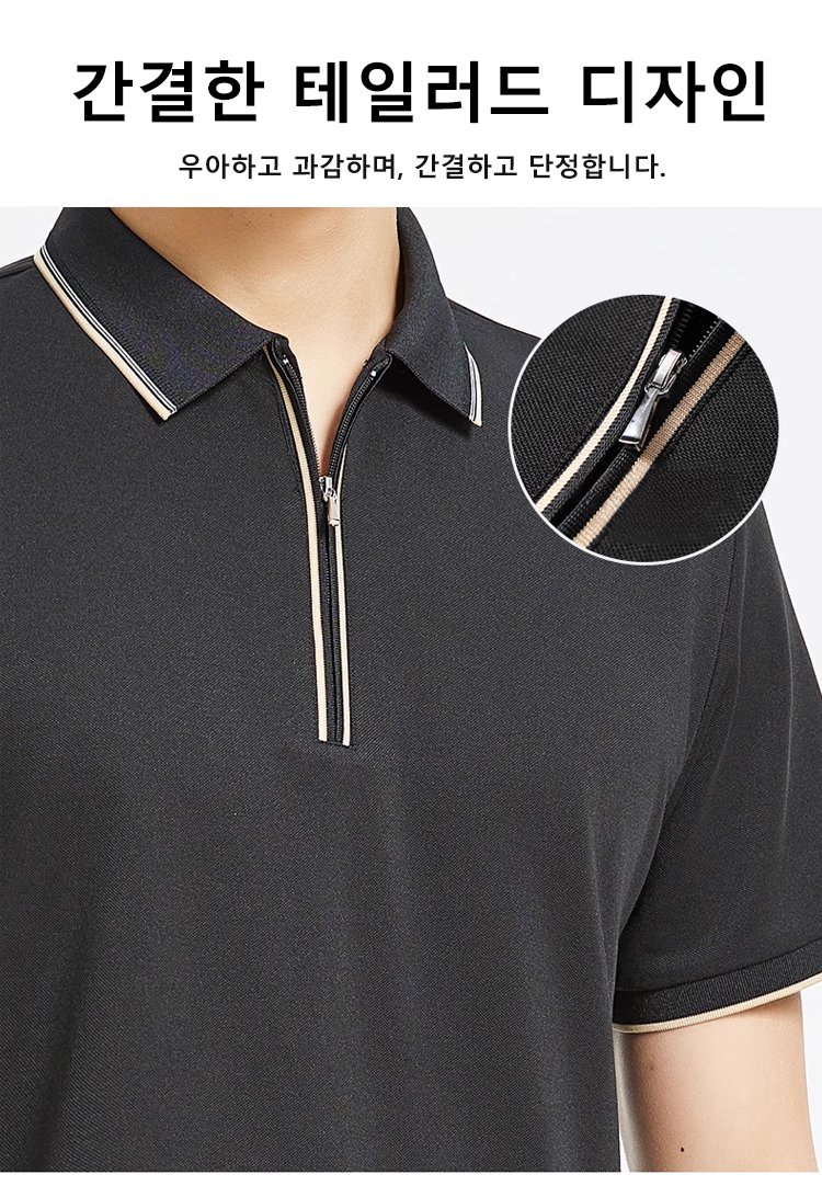 남성 하프 지퍼 라펠 칼라 반팔 티