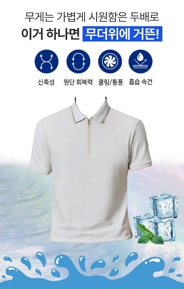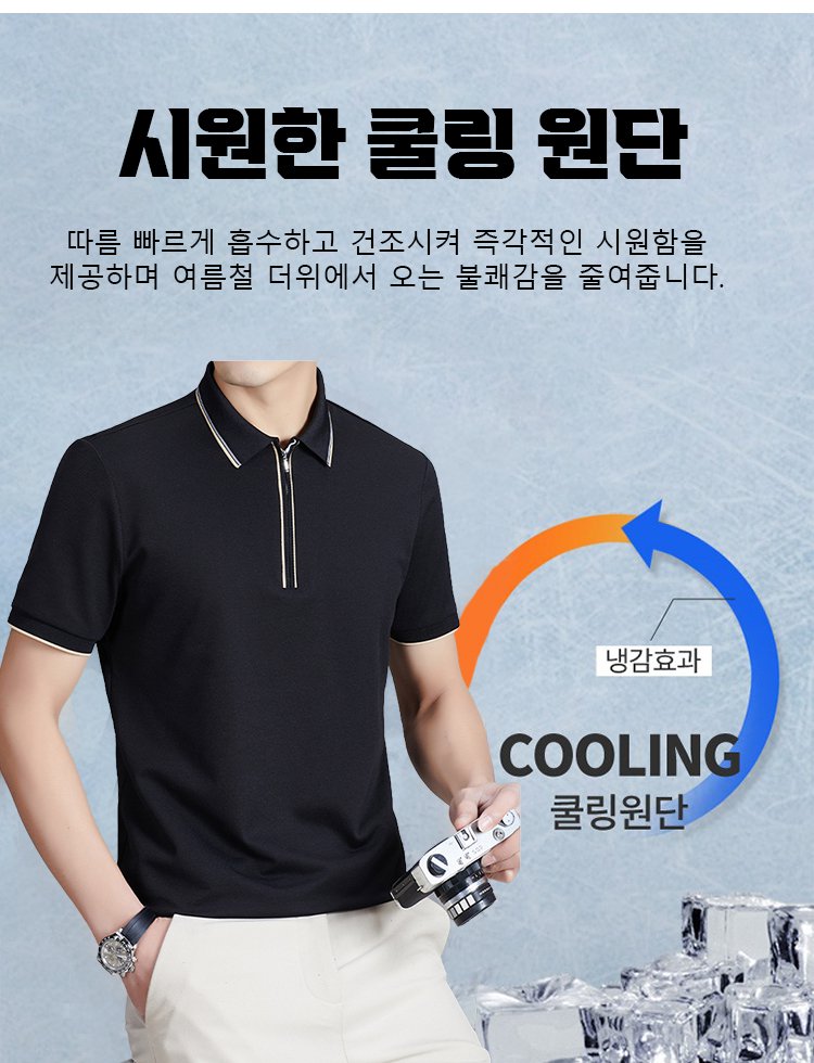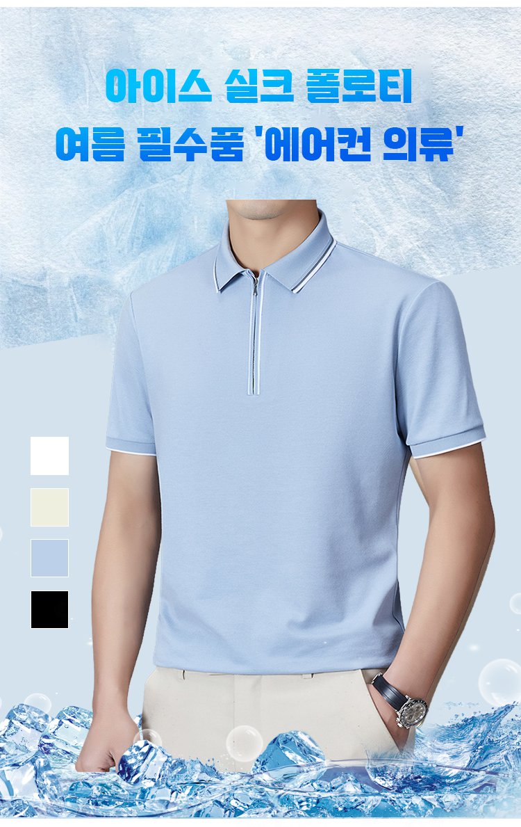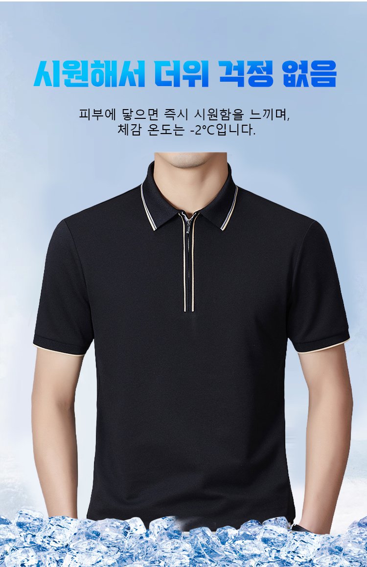남성 하프 지퍼 라펠 칼라 반팔 티